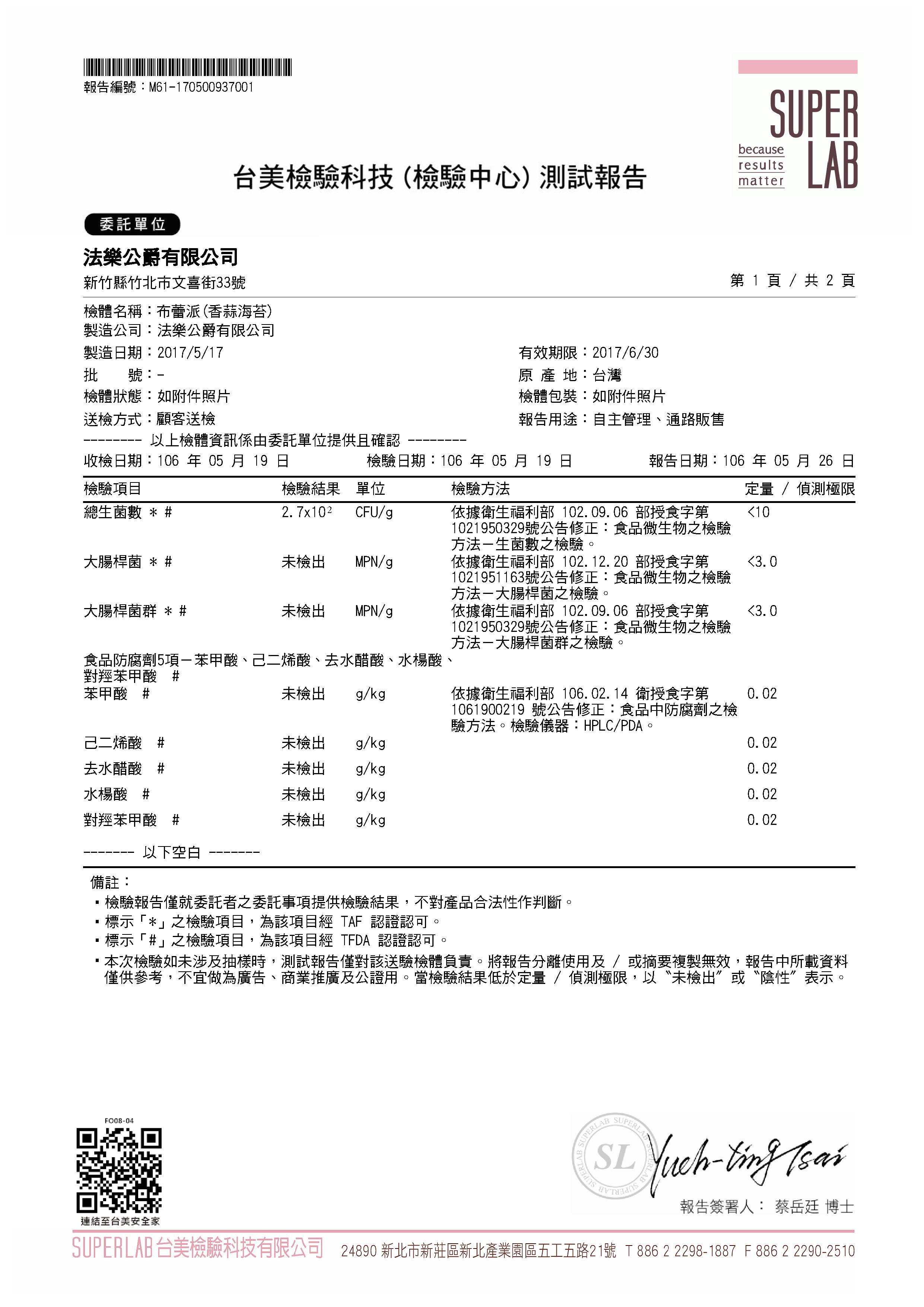 • 食品檢驗報告