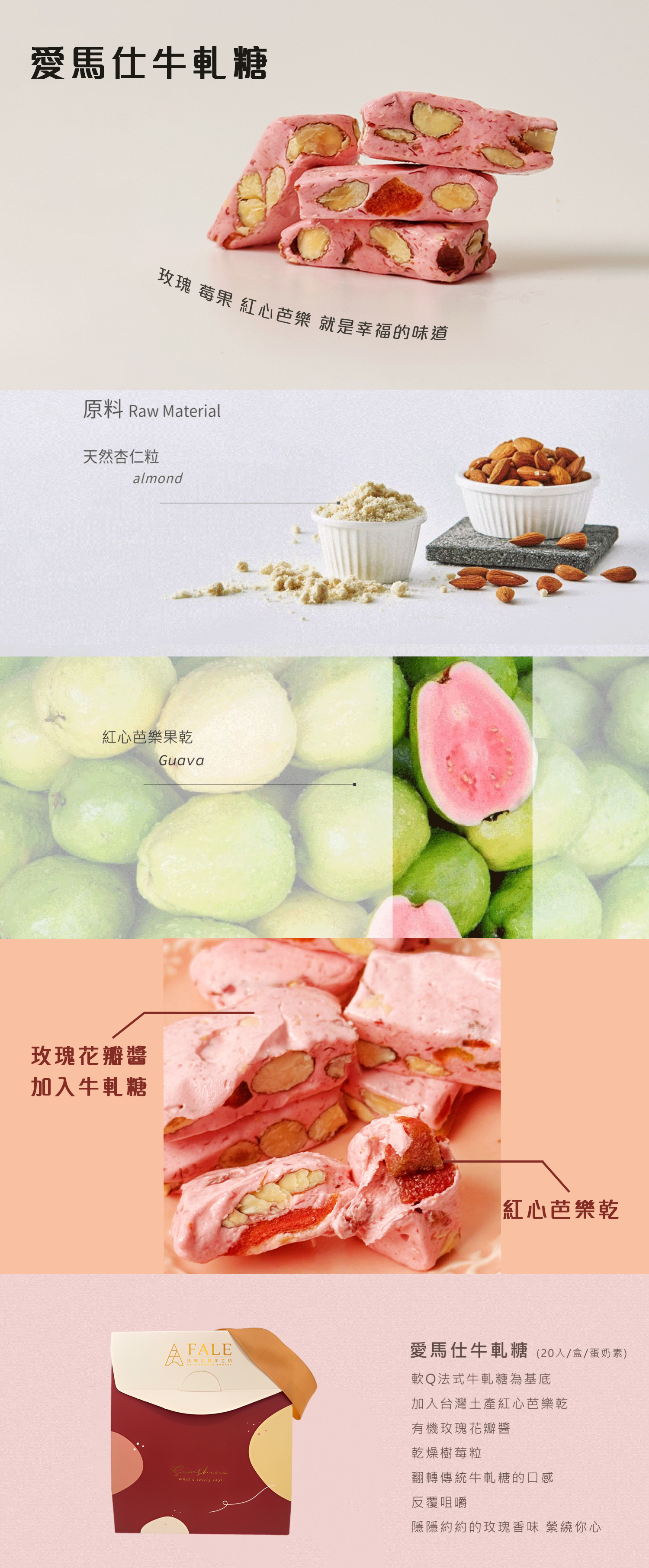 紅心芭樂乾、樹莓乾、杏仁、蘋果汁、檸檬汁、胭脂紅色素、鹽