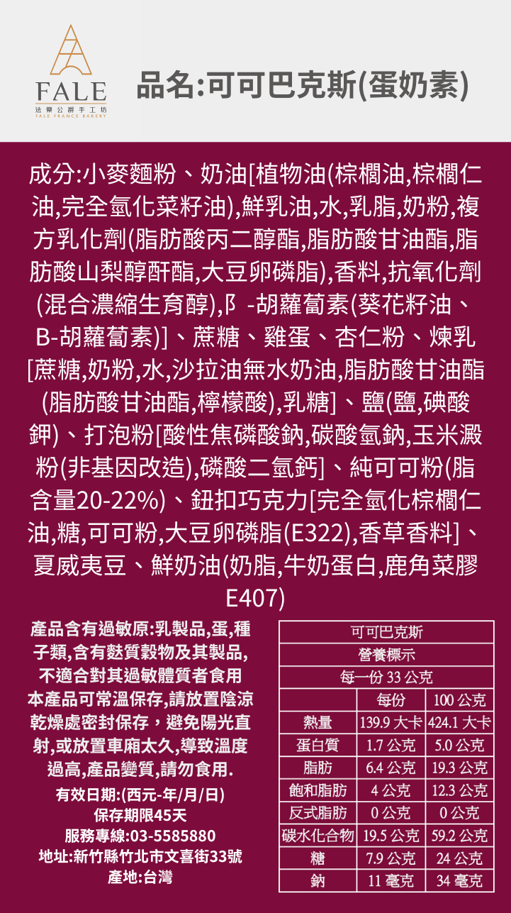3.過敏原資訊:本產品含有芝麻、堅果類、牛奶蛋類製品、麩質穀物,