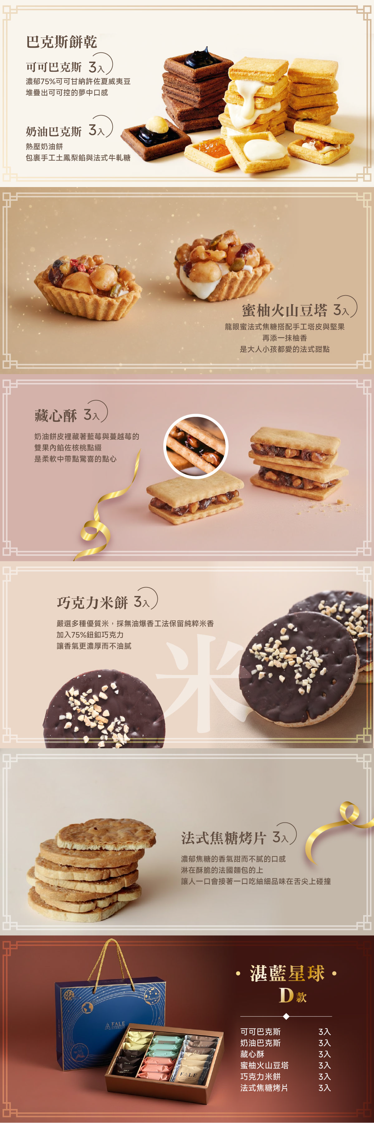 •藏心酥:奶油、麵粉、小麥澱粉、糖、棕櫚油粉、麥芽、藍莓果泥、核桃、蔓越莓、棕櫚油